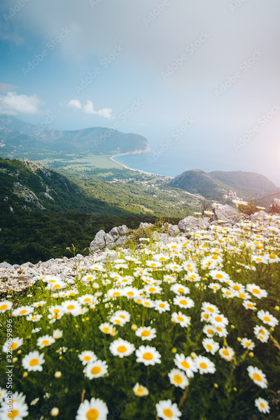 Aerial view of the Buljarica beach. Location Petrovac na Moru, Montenegro.