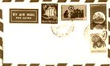 Luftpost airmail Australia Australien vintage retro air mail Briefmarke stamp frankiert used gestempelt Toowoomba 1966 Hermit Crab Einsiedlerkrebs Dirk Hartog Christmas Weihnachten Krippe Coral fish