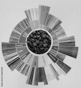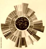 Specialty coffee concept. Roasted coffee beans in white cup on taster's flavor wheel. Top view