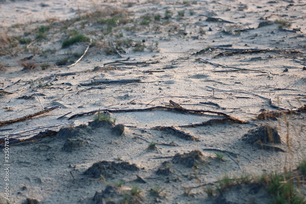Arid dry sandy area with rare grass, natural color, rough