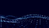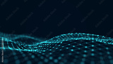 Big data visualization. Wave with the connection of luminous points and lines. 3D rendering.