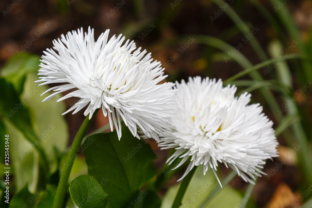 White double daisies on natural background. White daisies in the garden. Beautiful flowers of daisies.