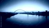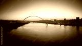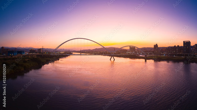 Crescent Bridge - landmark of New Taipei, Taiwan with beautiful illumination at day, aerial photography in New Taipei, Taiwan.