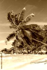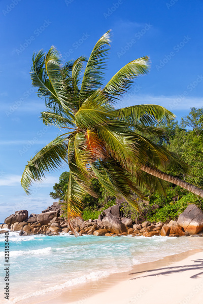 Seychelles Anse Georgette beach Praslin island palm portrait format vacation paradise ocean sea