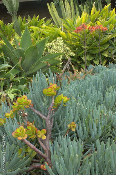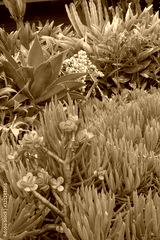 Flowering succulents in shades of green and yellow