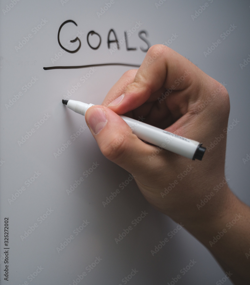 hand writing personal goals with marker on a board