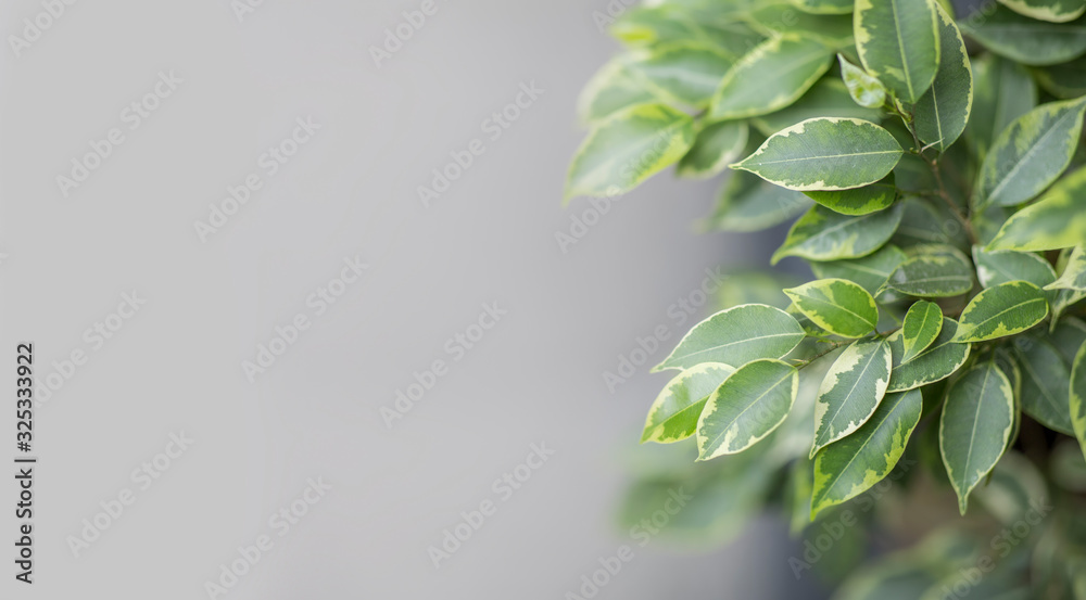 Young green plant outdoor, blurred background, copy space