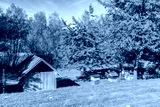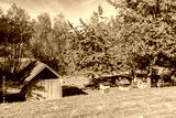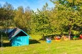 Beehives green on meadow in small village in Beskid Sadecki Mountains near Nowy Sacz, Poland