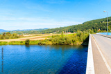 View of river near Velo Dunajec cycling road, Beskid Sadecki Mountains, Poland