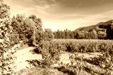 Hops growing on green fields in Beskid Sadecki Mountains near Nowy Sacz, Poland