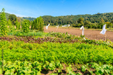 Vegetables growing on green fields near Velo Dunajec cycling road near Nowy Sacz, Poland