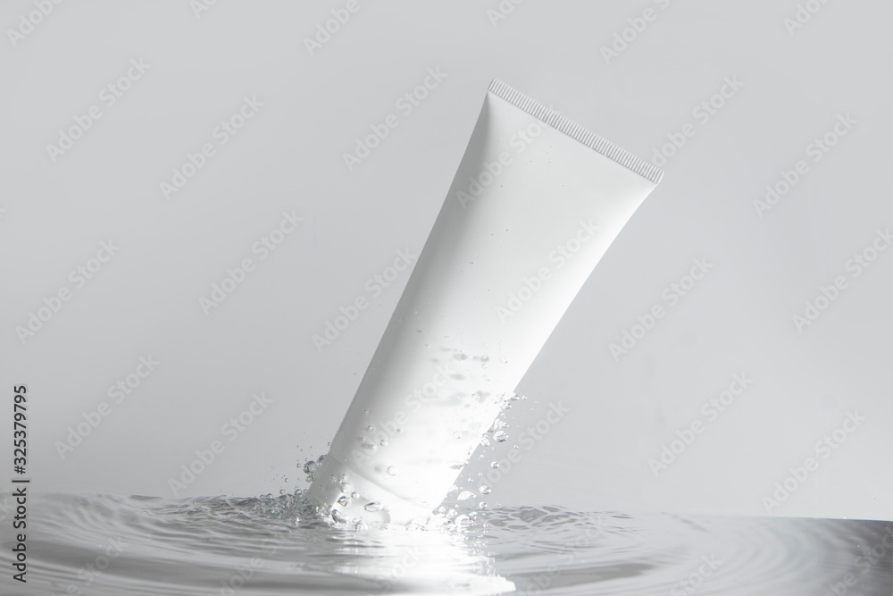 beauty treatment medical skincare and cosmetic lotion cream serum oil mockup bottle packaging product on water splash background, healthcare and medicine concept