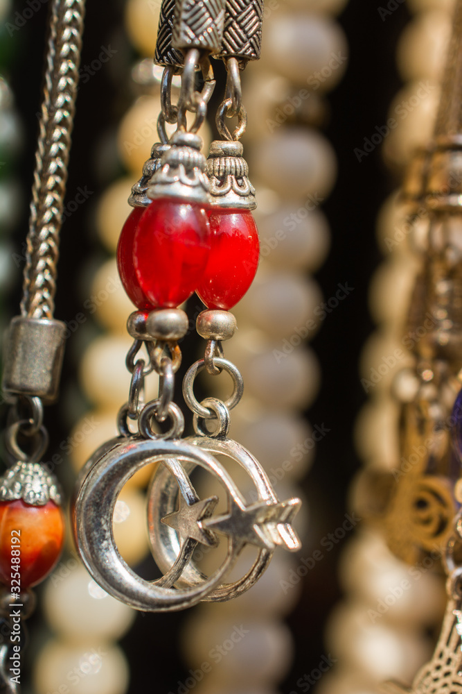 Colorful beads of various color and crescent