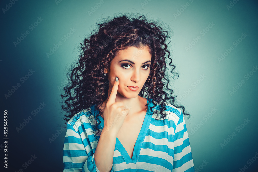 Have shame. Serious woman teacher showing have conscience hand gesture