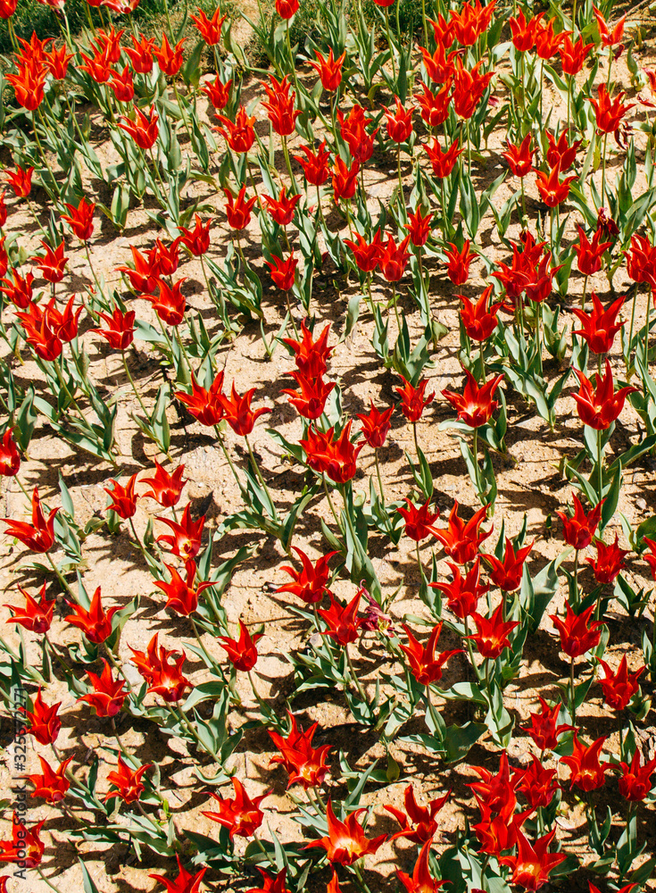 Blooming colorful tulip flowers as floral background