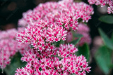 sedum telephium or Hylotelephium telephium, orpine, livelong, frog's-stomach, live-forever, Orphan John, pink colored flowers of stonecrops, closeup horizontal stock photo image background