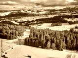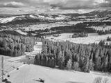 Beautiful panoramic aerial drone view to the ski slopes with lifts in the Bialka Tatrzanska ski resort Tatra Mountains (Tatras, Tatra) - mountain range between Slovakia and Poland