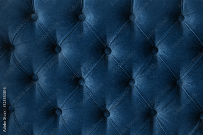 Quilted velour buttoned classic blue color fabric wall pattern background. Elegant vintage luxury sofa upholstery. Interior plush backdrop