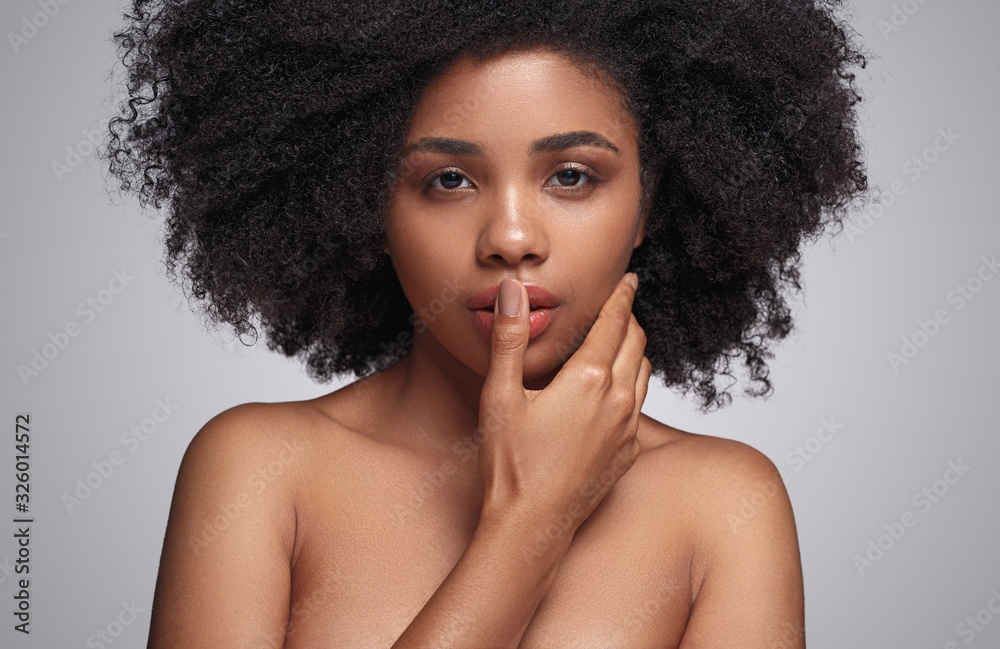 African American woman touching face