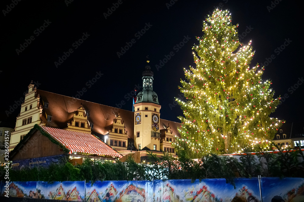 Traditional Festive Christmas fair at Marktplatz Market Square near Old Town Hall. Leipzig, Germany. November 2019