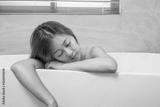 Young and beautiful girl using phone relaxing in the retro bath indoors