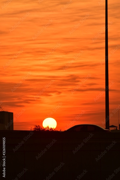 Sunset view Beautiful golden yellow sky in big cities