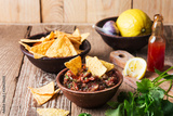 Homemade salsa and tortilla chips, favorite Mexican appetizer snack