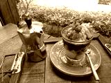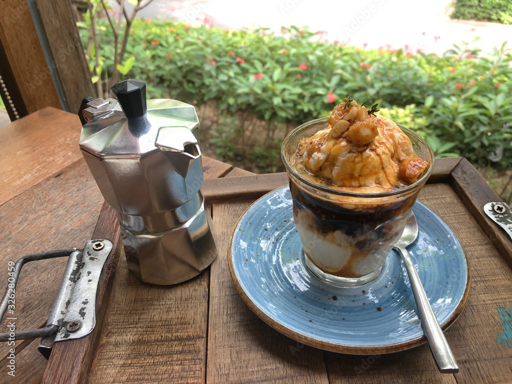 Affogato coffee with ice cream in close up