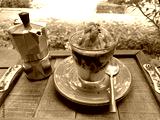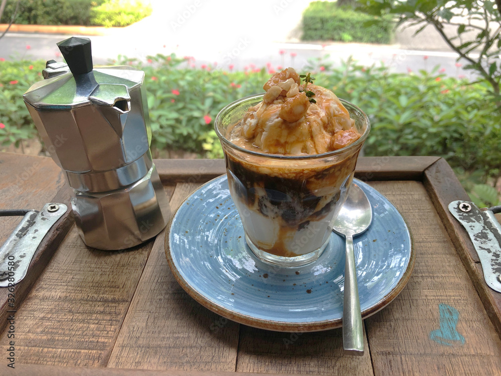 Affogato coffee with ice cream in close up