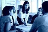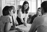 Architect working on blueprint with team