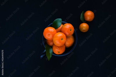 Tangerine oranges on black background.