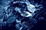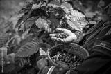 Worker Harvest arabica coffee berries on its branch,Agriculture economy industry business, health food and lifestyle, at the north of Thailand.