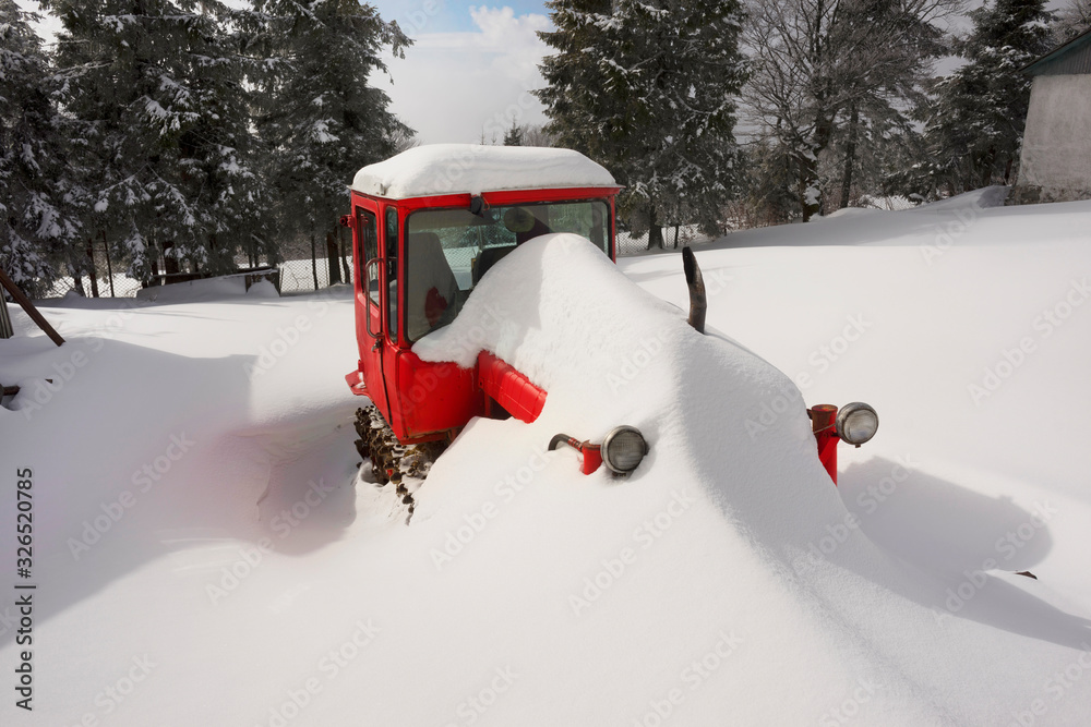 Snow covered tractor.