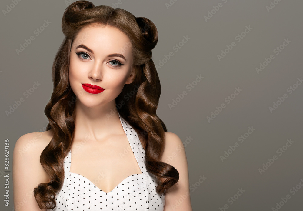 Pin up woman beautiful portrait red lipstick