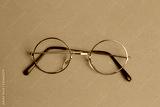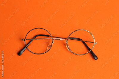 glasses with round crystals on colored background