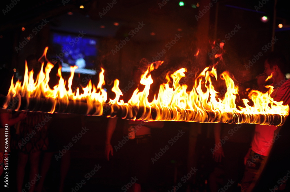 Fire show performance at a beachfront restaurant in Thailand tourist attraction