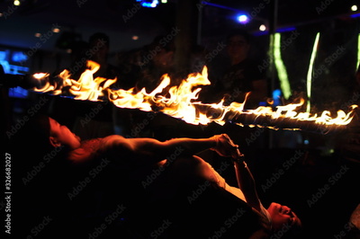 Fire show and fire show in various forms at restaurants near the beach, Ko Samet
