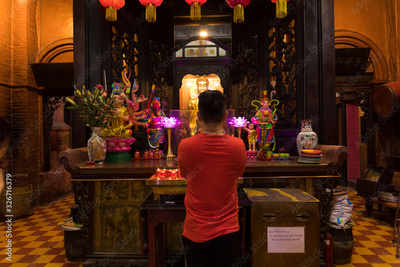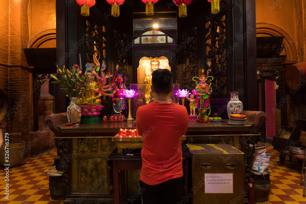 Unidentified people make a merit inside Jade Emperor Pagoda or Phuoc Hai Tu Temple in Ho Chi Minh, Vietnam