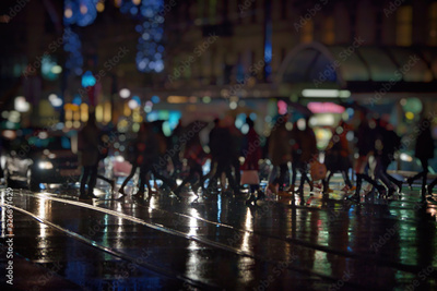 crowd of people on night street in the city