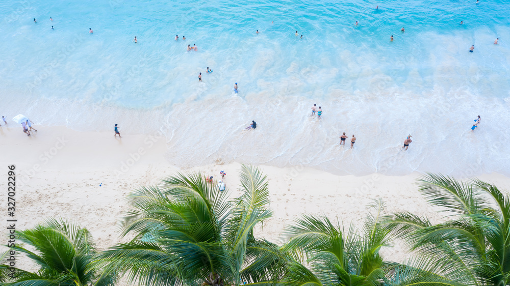 Surin beach in Phuket, southern of Thailand, Surin beach is a very famous tourist destination in Phuket, Beautiful beach. View of nice tropical beach with palms around. Holiday and vacation concept.