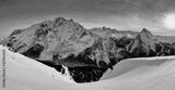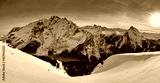 Beautiful panoramic view to the Sellaronda - the largest ski carousel in Europe - skiing the four most famous passes in the Dolomites (Italy), extraordinary snowy peaks of the dolomites, southern alps