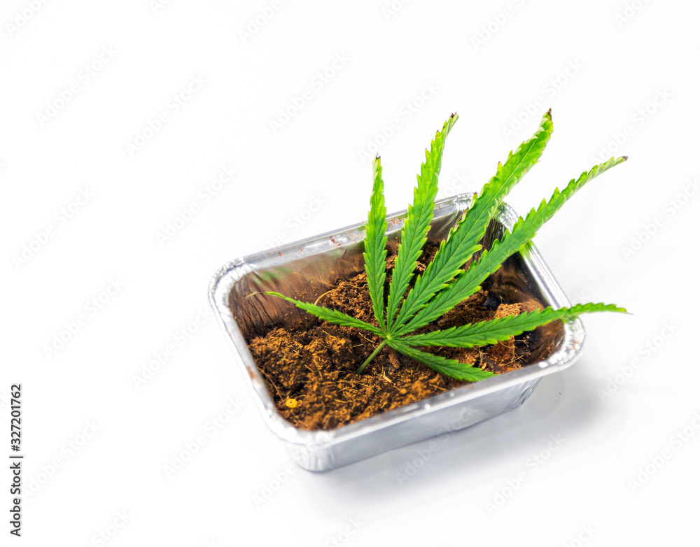 green marijuana in floid plate with soil package