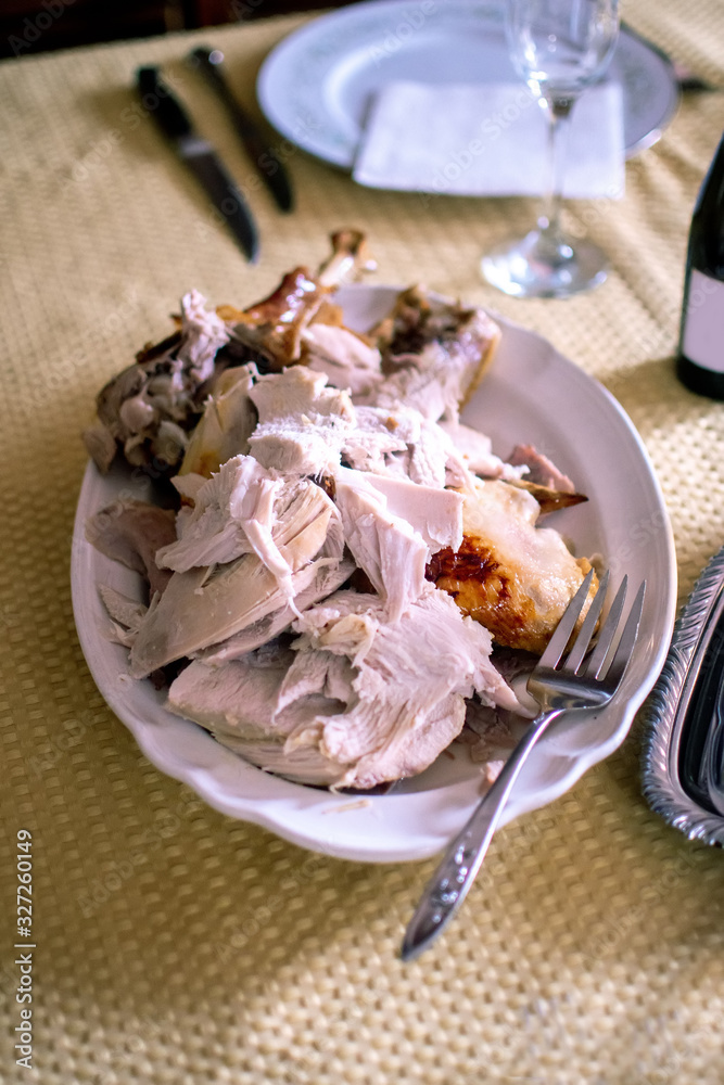 Platter of turkey cut up for a thanksgiving day meal