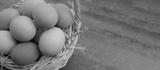 Banner background with copy space, Colorful Easter eggs on wooden background