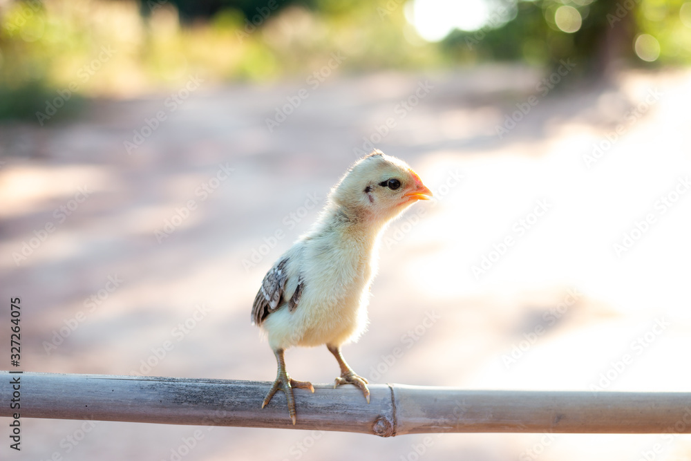 Easter concept, Cute small chicks In nature, the soft sunlight in the morning