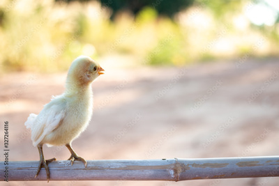 Easter concept, Cute small chicks In nature, the soft sunlight in the morning
