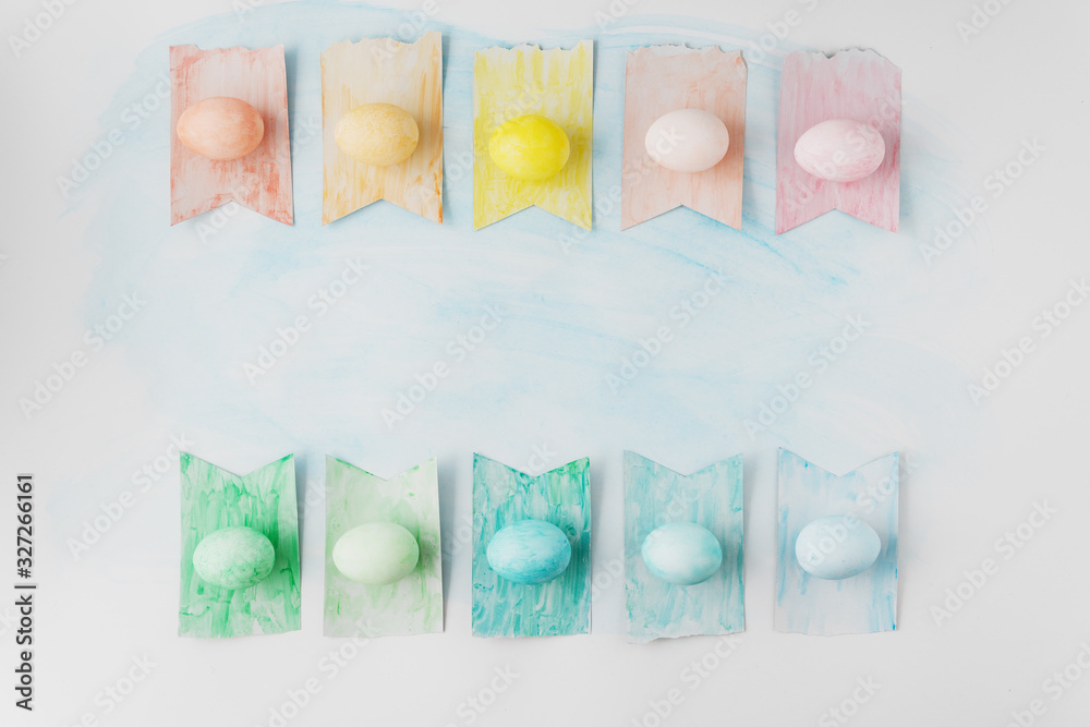 Creative Easter layout handmade with colorful Easter eggs.