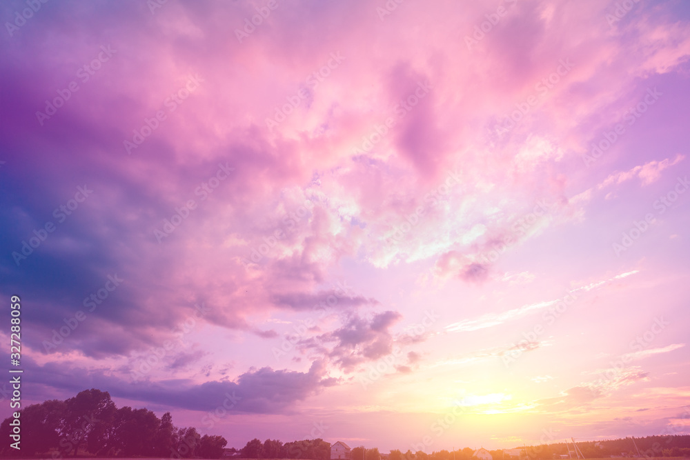 Colorful cloudy sky at sunset. Gradient color. Sky texture. Abstract natural background