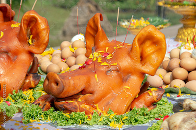 cutting pig head to serve in spiritual to sacrifice in hinduism