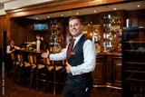 For your enjoyment. Portrait of smiling waiter welcoming guests in hotel restaurant